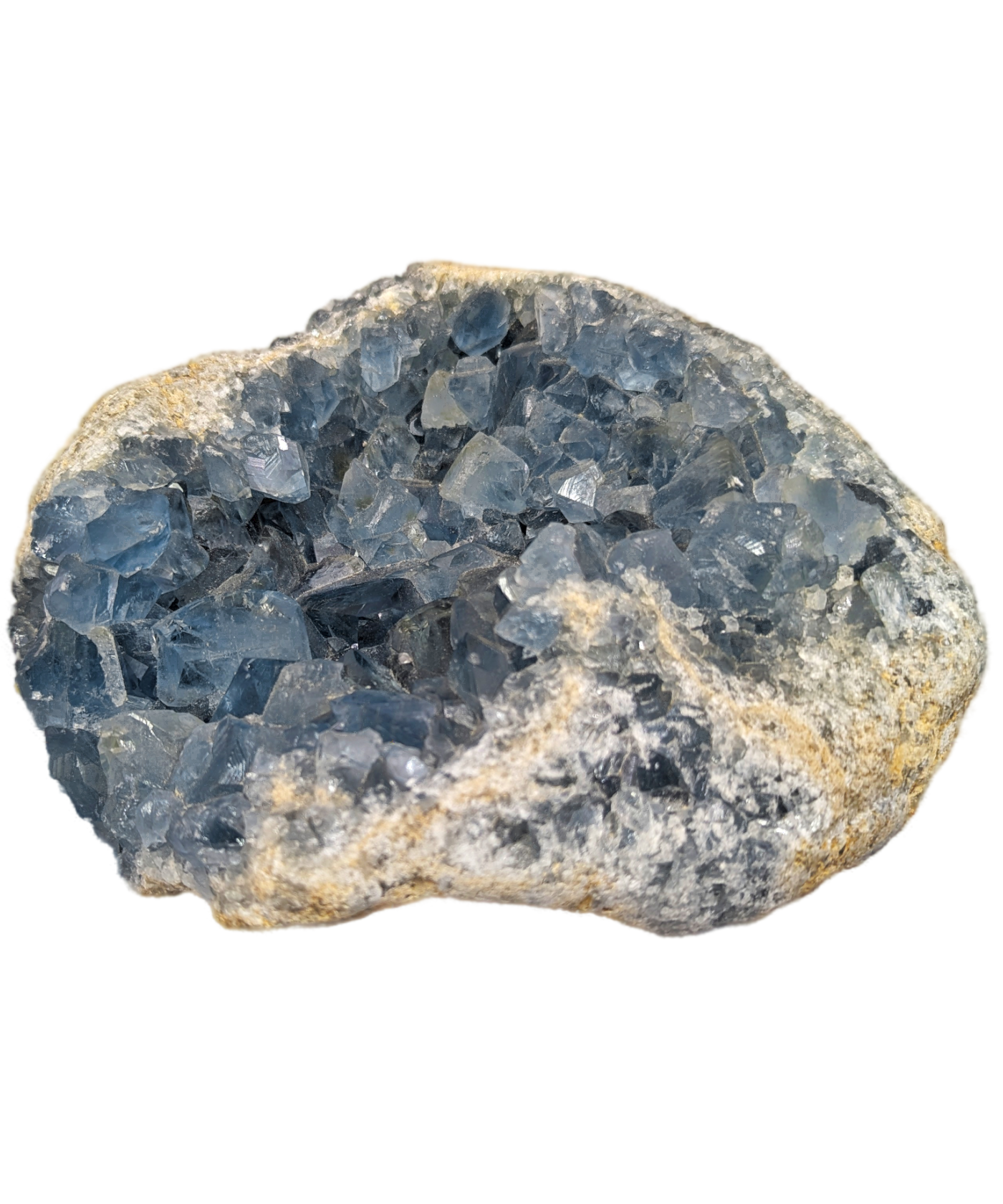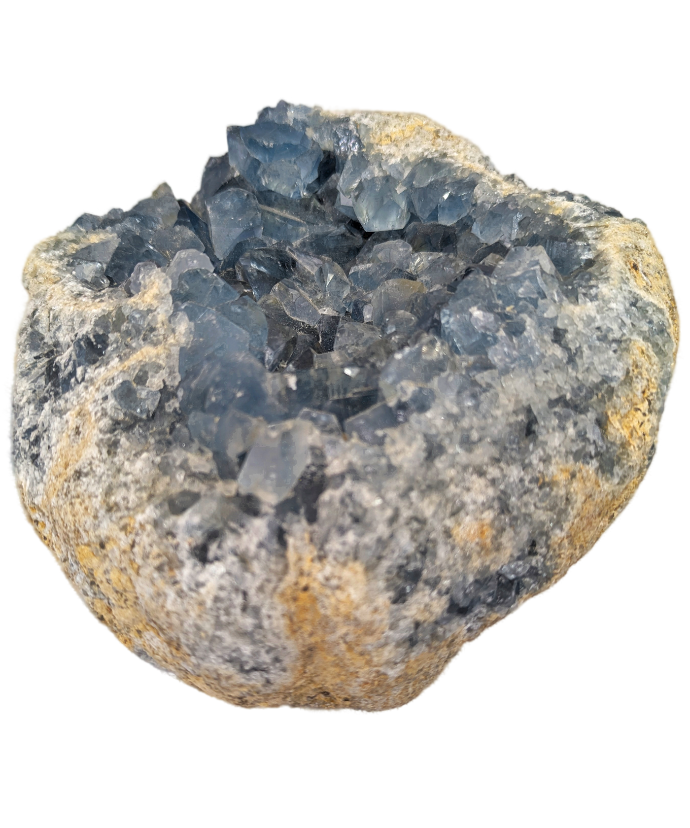 Bring the soothing energy of the Celestite Cluster into your space with this exquisite piece, available exclusively at Casita Casito. Celestite, with its gentle blue hues and delicate crystals, is renowned for its calming and spiritual properties, making it the perfect addition to your home, office, or meditation space.